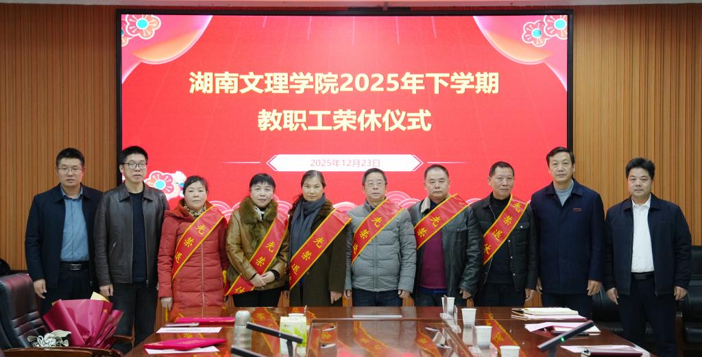 12月23日下午,学校在逸夫楼A305会议室为2025年下半年光荣退休的教职工举行荣休仪式。校党委书记刘宇文,党委副书记、校长周智华,党委委员、副校长戴军出席仪式。六位荣休教职工代表及各相关部门负责人参加活动。仪式由戴军主持。