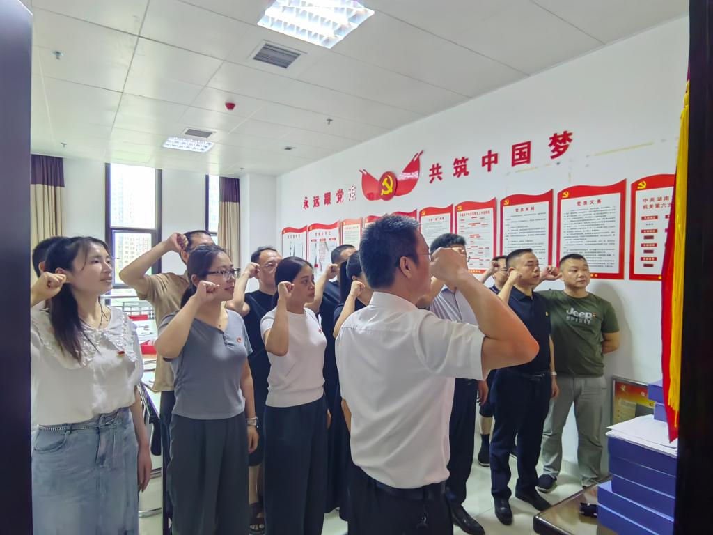 时值“七一”党的生日来临之际,会议特别组织全体党员面向党旗,庄严重温入党誓词。在铿锵有力的誓言中,党员们再次铭记初心使命,坚定了为党的事业不懈奋斗的信念与决心。